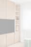 The use of three different types of travertine, classic, silver and walnut, was the common thread for the creation of the various custom-designed fixed furnishings in the flat. The living room features three different bookcases made with a combination of these three marbles, which are also found in the kitchen and bathrooms. The only variation was made in the master bathroom, where white Carrara marble was chosen.